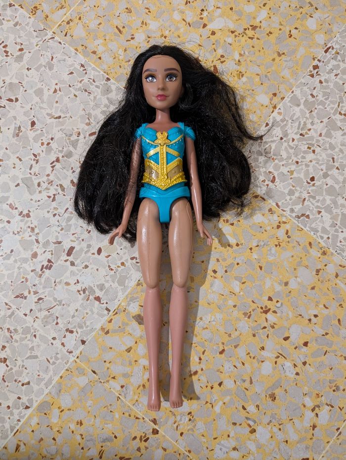 Bonjour Je vends cette poupée de jasmine dans Aladdin de Disney, qui chante, les piles fonctionnent encore, en bon état possibilités de traces d'usure puisqu'il s'agit d'un jouet d'occasion voir photos vous achetez ce que vous voyez Non je n'ai plus son pantalon