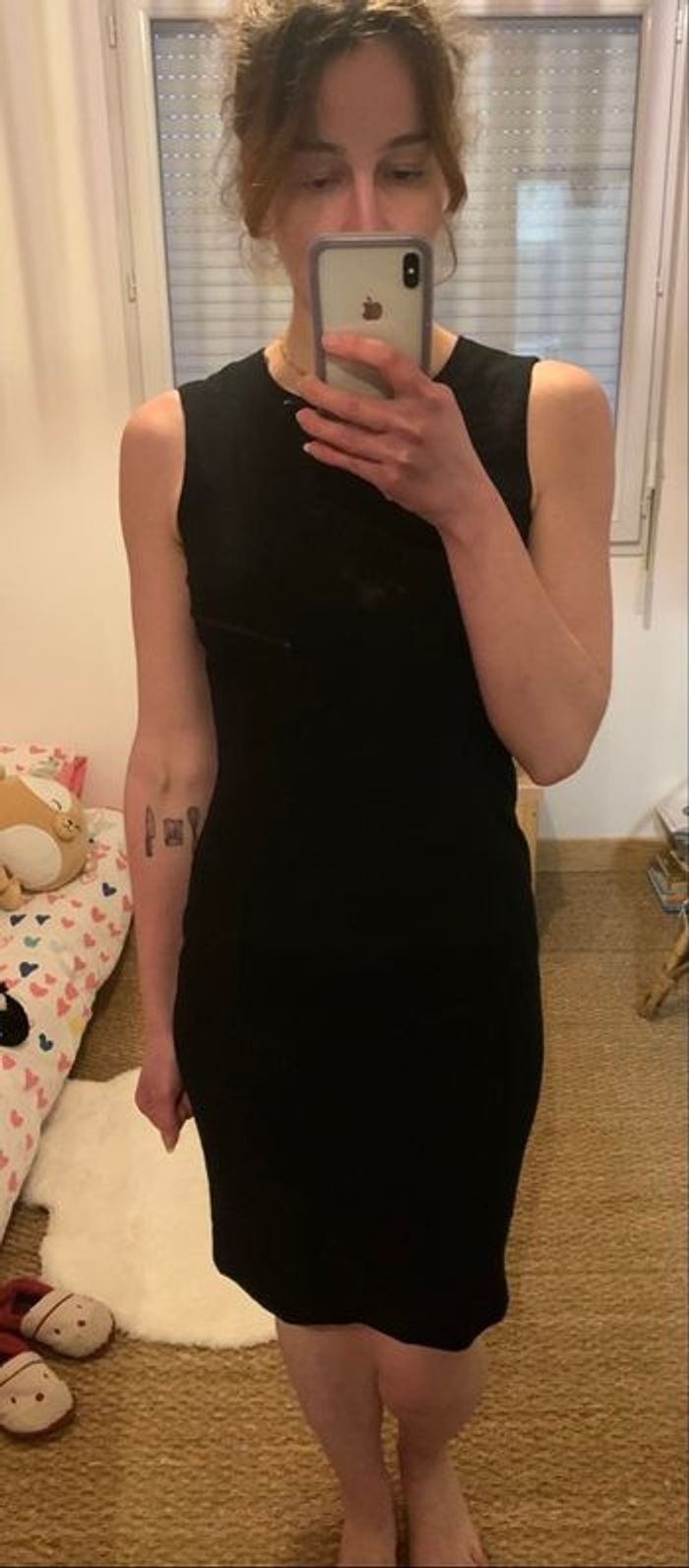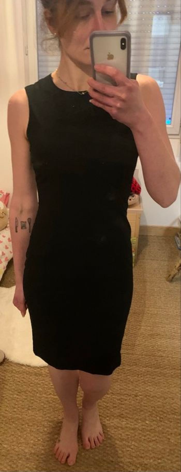 Superbe robe noire près du corps, coupe simple. Parfaite pour aller au travail. Fermeture dans la nuque Marque : Zara Taille : M Peu portée elle est en excellent état sans tache ni trous Je la vends car elle ne correspond plus à mon style