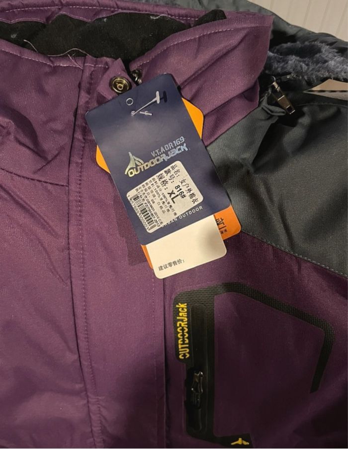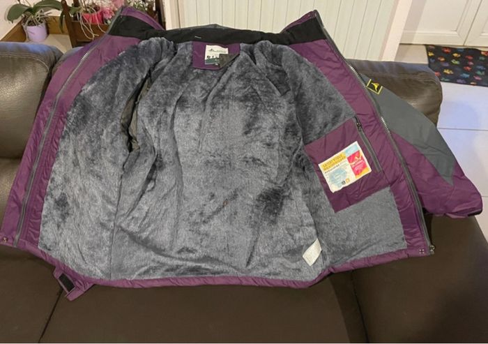 Manteau doublé Violet et gris neuf Capuche amovible Vendu pour une taille XL mais correspond plus à une taille M Longueur 64 cm Dessous de bras à dessous de bras 53 cm voir photo