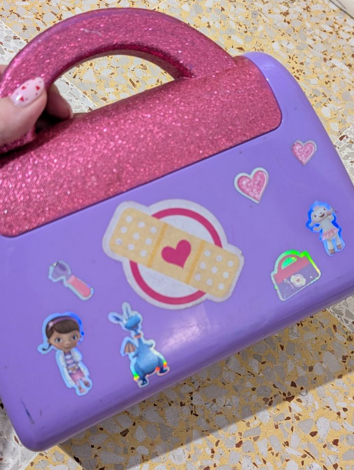Bonjour Je vends cette trousse de soin dr la peluche de Disney en bon état possibilités de traces d'usure puisqu'il s'agit de jouets d'occasion voir photos vous achetez ce que vous voyez Je ne dissocie pas le lot Merci