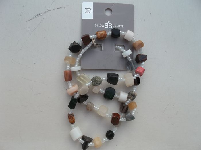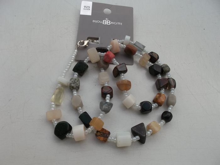 JOLI COLLIER EN PERLES DE NACRE ET PIERRES NATURELLES. Bijou Brigitte. Fermoir argent. Longueur 60 cm. NEUF sur présentoir. Acheté 35€. Idéal cadeau. Dans sachet cadeau