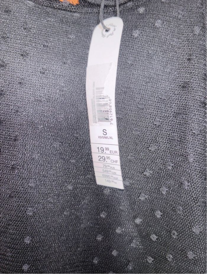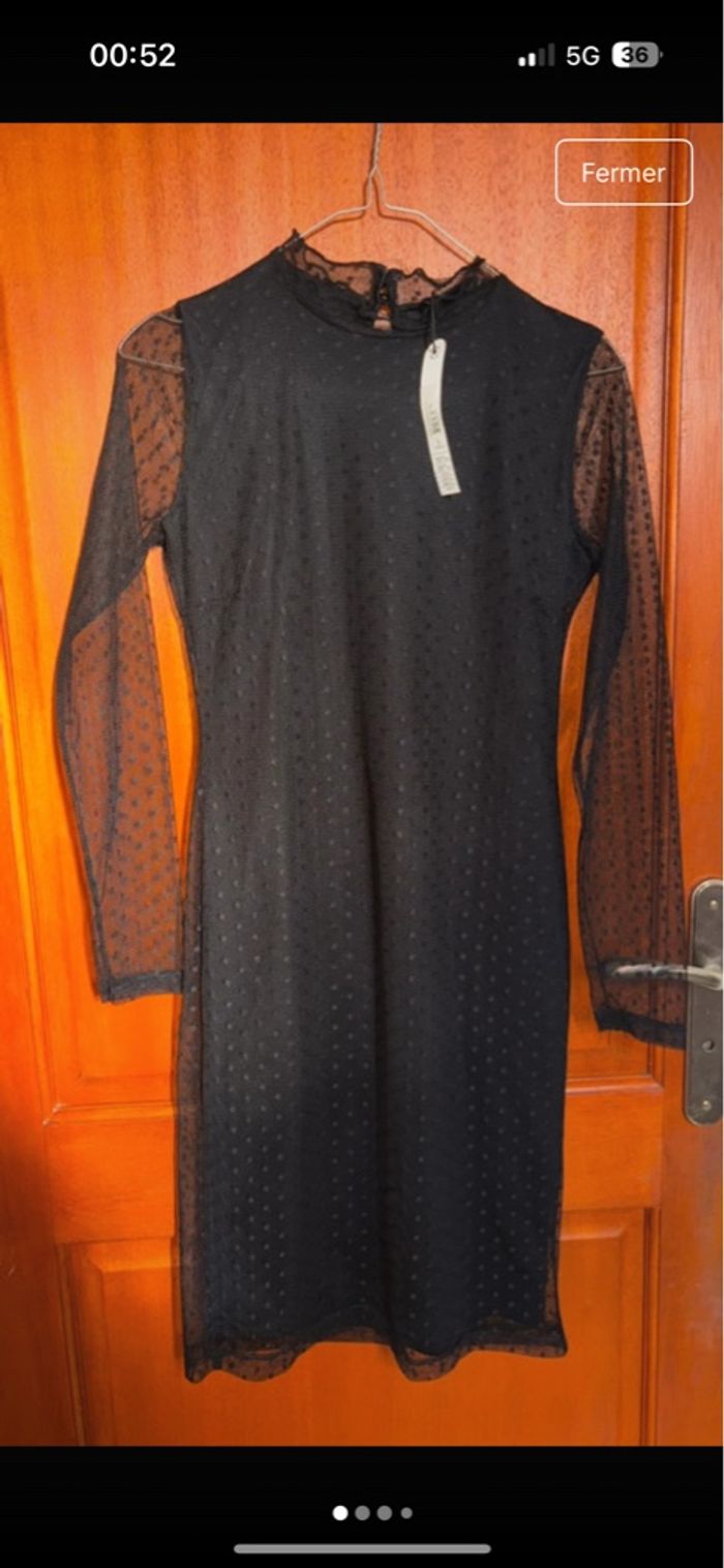 Robe noire avec des petits pois, et avec détail de transparence sur les bras Neuf avec étiquette Taille S