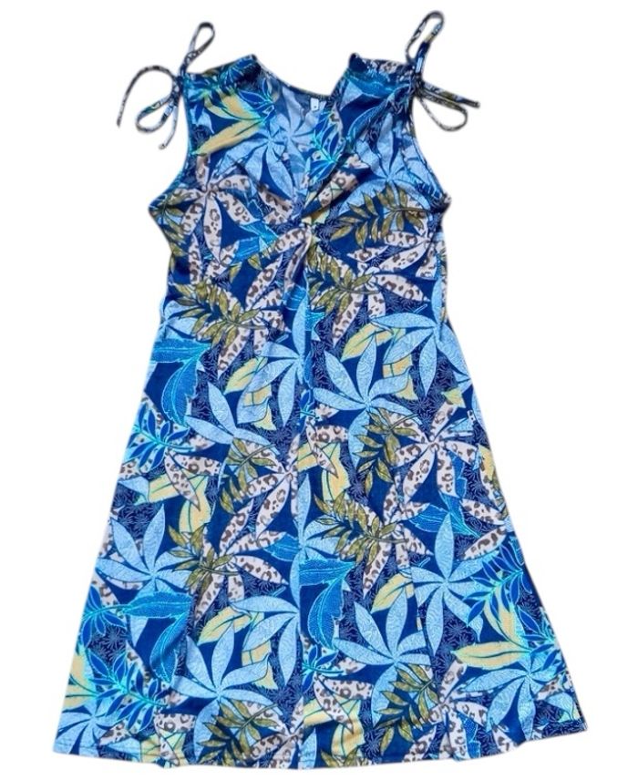 🍃 Belle robe d’été avec motif feuillage 📏 Taille M 👗 Col en V 🧵 Tissus plissé au niveau de la poitrine 🪢 Lacets de serrage aux épaules —> Très confortable ✅️ Neuve, jamais portée 📦 Envoi rapide et soigné ✨ Petit prix, à saisir 🏷 N'hésitez pas à regarder mes articles, il y a des réductions sur les lots 🤗