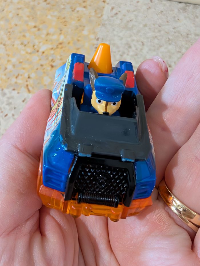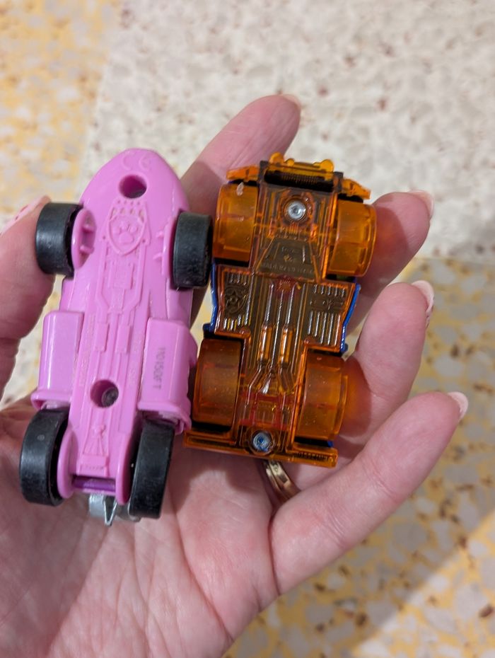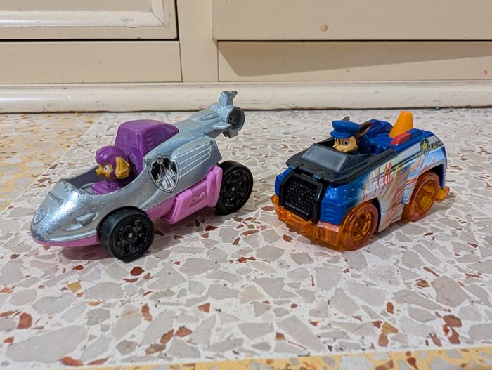 Bonjour Je vends c'est deux véhicules de la pat patrouille stella et chase en bon état possibilités de traces d'usure puisqu'il s'agit de jouets d'occasion voir photos vous achetez ce que vous voyez Je ne sépare pas le lot