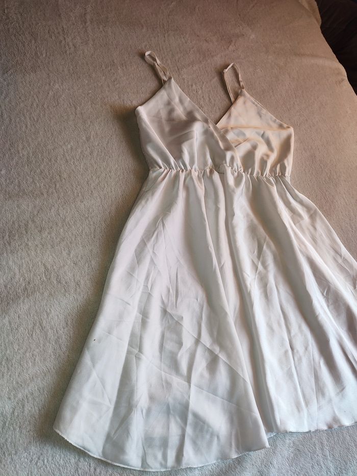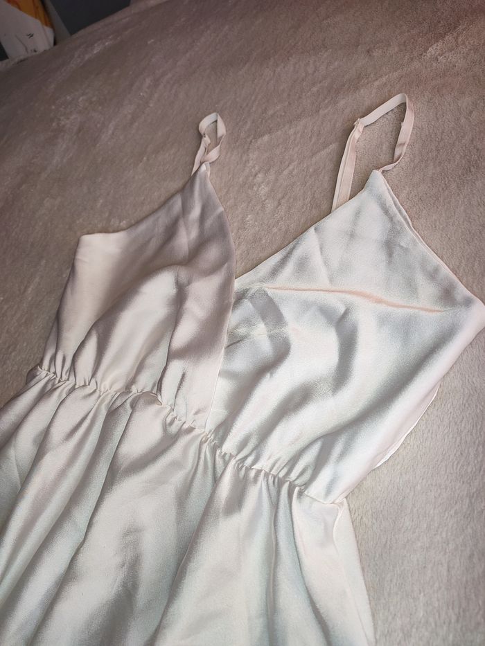 Petite robe blanche satinée, très élégante. Bretelles réglables Taille 36 État neuf