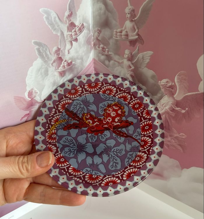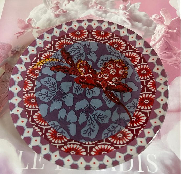 Coupelle Fragonard Heliotrope Gingembre Je vends cette jolie coupelle porte-savon ou vide-poche de chez Fragonard (vendue sans le savon et la boîte d’origine ) modèle Heliotrope Gingembre Diamètre : 13 cm environ Coupelle en verre motif oriental multicolore envoi rapide et très soigné ou remise en main propre possible à Chartres, secteur cathédrale.