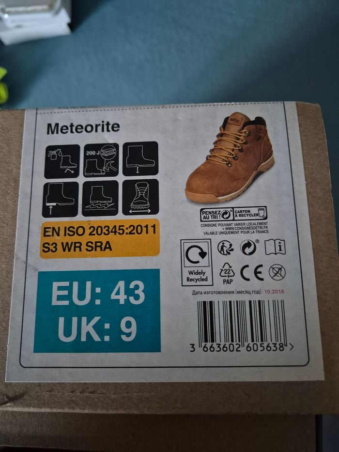 Chaussures de sécurité haute imperméable, site meteorite taille 43 neuve.