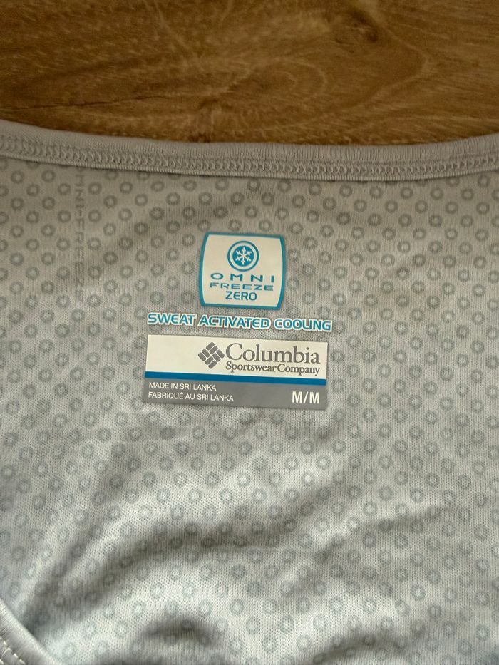 🌲 Débardeur technique Columbia ultra-performant pour la randonnée, le trail ou le fitness par forte chaleur. Coloris gris clair / argenté. ❄️ Technologie Omni-Freeze Zero : le tissu contient des petits cercles bleus qui s'activent au contact de la sueur pour vous rafraîchir immédiatement. Détails : • Marque : Columbia • Taille : M (Femme) • Coupe : Dos nageur avec fente d'aération à l'arrière pour plus de confort. • État : Excellent état, comme neuf. Un indispensable pour ne pas souffrir de la chaleur pendant l'effort. ☀️ 📦 Envoi rapide sous 24h. 💡 Regardez mon dressing pour faire des lots ! Gros stock Columbia disponible (pantalons, shorts, t-shirts) pour réduire vos frais de port