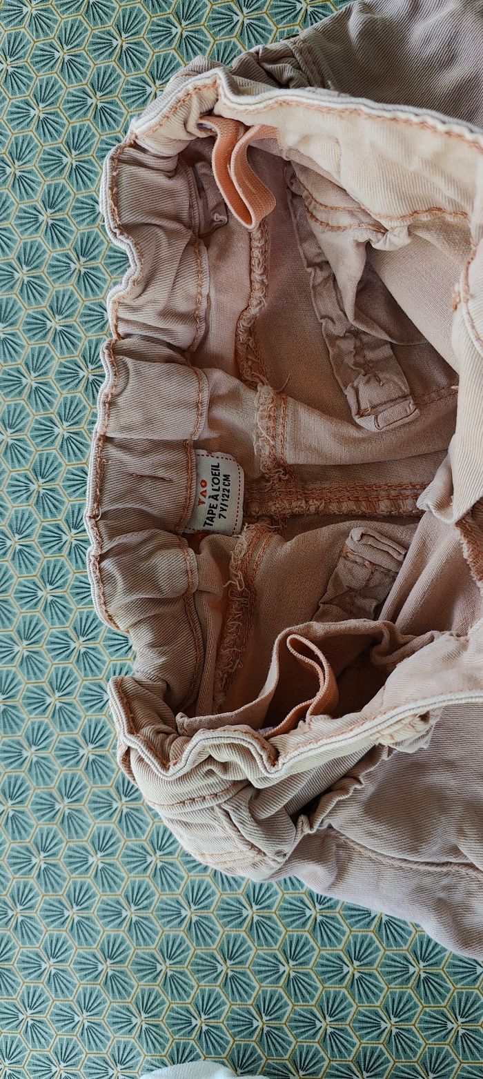 Short jean rose saumon 7 ans, fermeture avec crochet