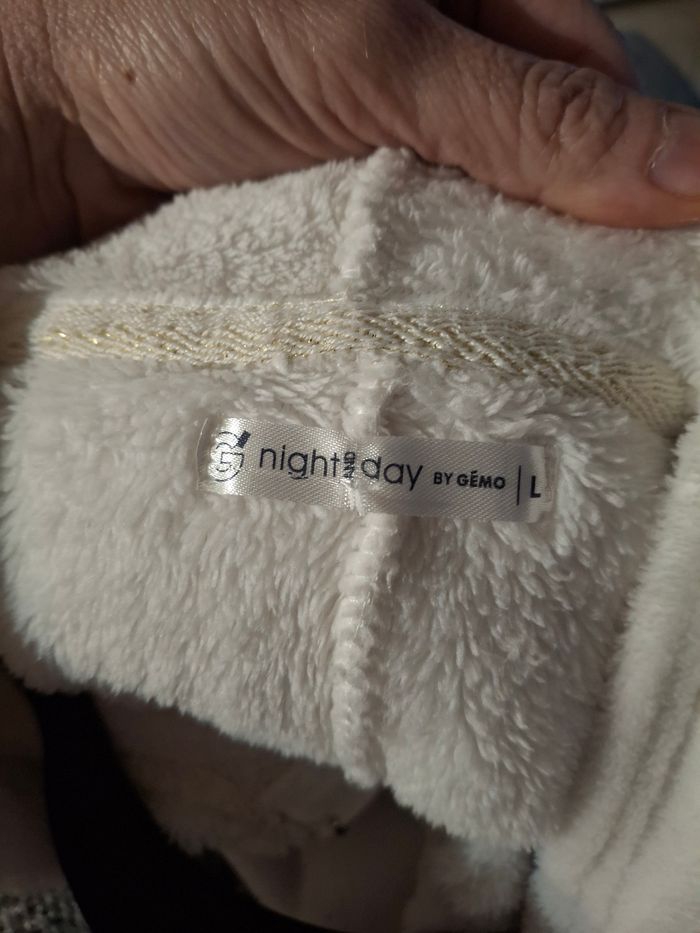 Superbe combinaison pyjama en pilou pilou écru à capuche taille L marque gémo, tres bon état, toute douce et très confortable.