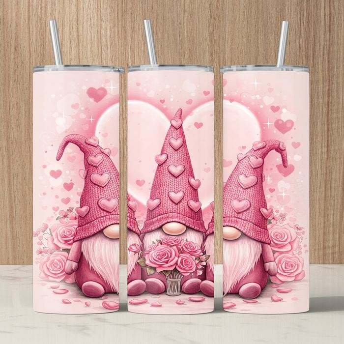 💗 Tumbler isotherme – Gnomes amoureux & roses 💗