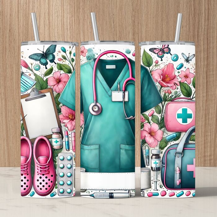Superbe tumbler au design coloré et moderne, dédié aux métiers de la santé 💉 Illustration avec tenue médicale, stéthoscope, trousse de secours, papillons et fleurs 🌺 Un modèle à la fois pratique, original et plein de douceur. ✔️ Tumbler isotherme (boissons chaudes & froides) ✔️ Livré avec couvercle + paille ✔️ Motif visible sur tout le tour ✔️ Idéal pour le travail, les pauses café, l’eau ou le thé