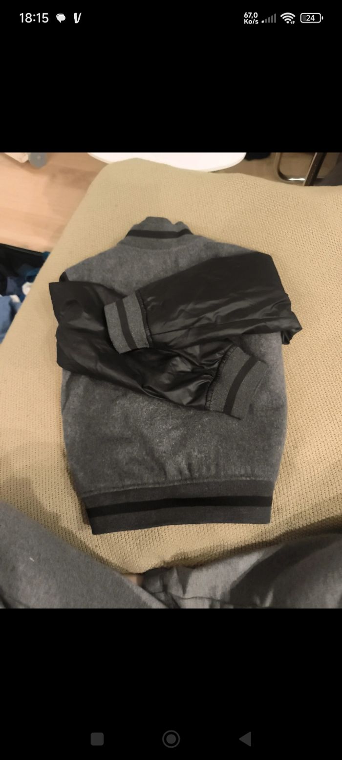 Ajoutez une touche de style "Karl" à la garde-robe de votre enfant avec ce superbe bomber bicolore. C'est la pièce parfaite pour la mi-saison et l'hiver, alliant élégance parisienne et confort absolu. ​💎 Pourquoi vous allez l'adorer : ​Matière Noble : Rare pour du prêt-à-porter enfant, elle contient 48% de laine. Elle est chaude, texturée et de très haute tenue. ​Design Iconique : Coupe Teddy (varsity) grise avec manches noires contrastées. Logo discret et chic sur la poitrine. ​Finitions Premium : Intérieur entièrement doublé (mélange viscose/polyester) pour un glissé parfait sur les vêtements.