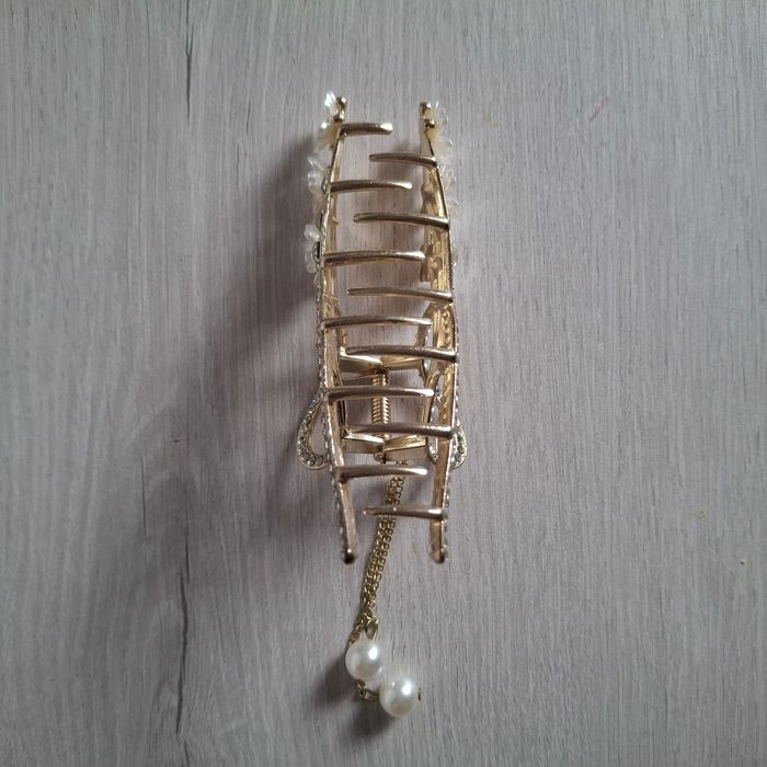 Pince à cheveux dorée fleurie avec perles et strass – Style élégant & chic - photo numéro 1