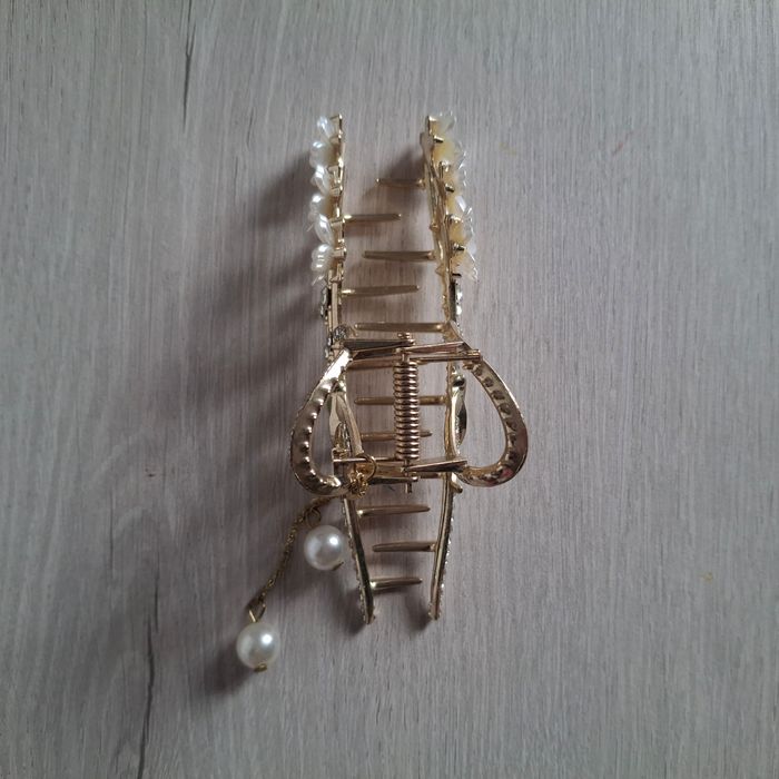 Pince à cheveux dorée fleurie avec perles et strass – Style élégant & chic - photo numéro 5