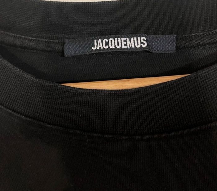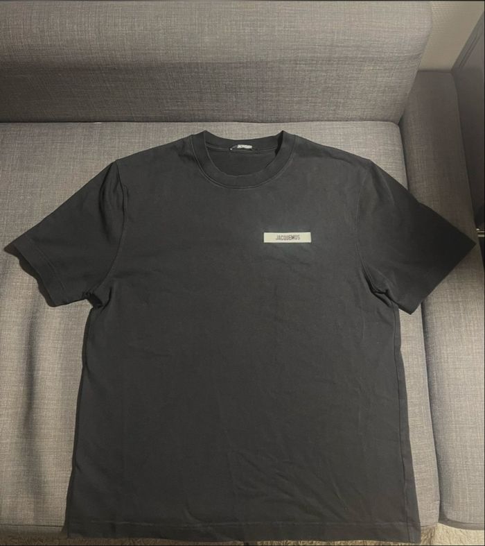 T-shirt Jacquemus noir pour homme, taille XL. Modèle minimaliste avec logo Jacquemus cousu sur la poitrine. Coupe droite, col rond, matière 100 % coton, fabrication au Portugal. Très bon état général, peu porté, sans défaut notable. Pièce sobre et élégante, facile à associer avec toutes les tenues.