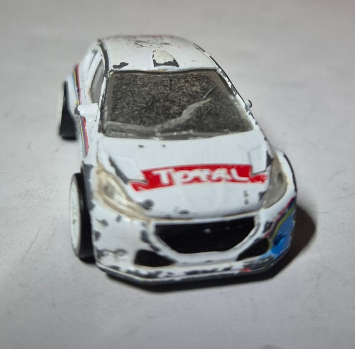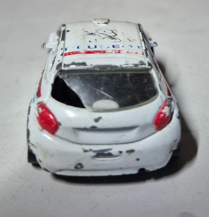 Modèle réduit Peugeot 206 WRC de la marque Norev échelle 1/43 carrosserie blanche décorée Total avec numéros et bandes rallye. Châssis estampillé Norev Peugeot 206 WRC. Modèle présentant des traces d’usage, usure de peinture, pare-brise abîmé et stickers partiellement effacés. Roues fonctionnelles. #norev #peugeot206 #206wrc #voitureminiature #modelereduit #rallye #diecast #collectionminiature #wrc #norevcollection #miniature143