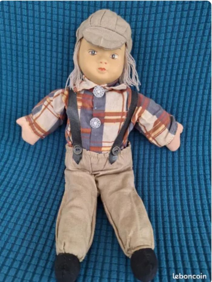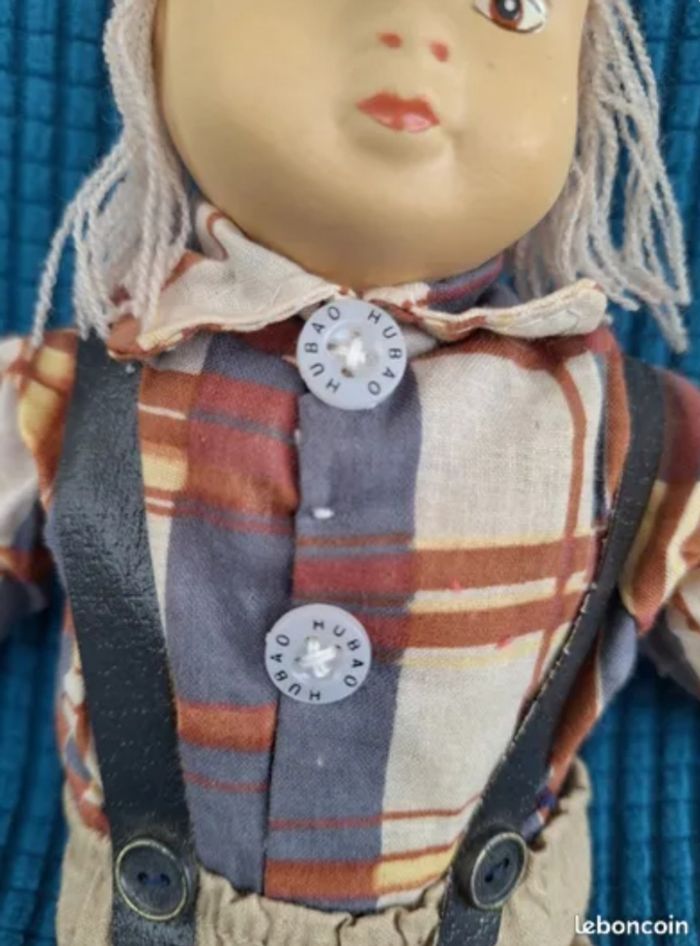 Poupée vintage boy Doll La tête est en porcelaine Corps mou Inscription Hubao sur les boutons de la chemise Hauteur 30cm En parfait état