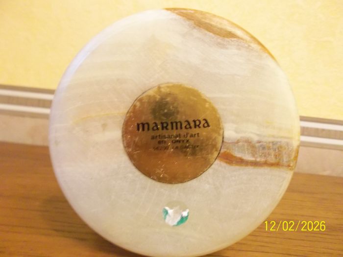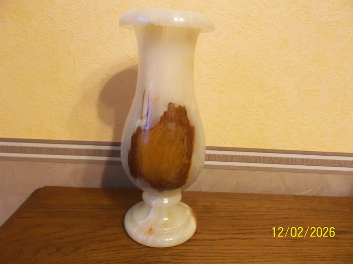 GRAND VASE EN ONYX. Fabrication artisanale. Hauteur 23 cm. NEUF avec l'étiquette de l'artisan.