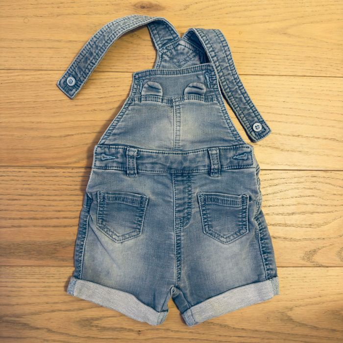 Belle salopette en denim Kiabi taille 18 mois. Très bon état, peu portée. Couleur bleu clair. Bretelles réglables. Idéale pour bébé.