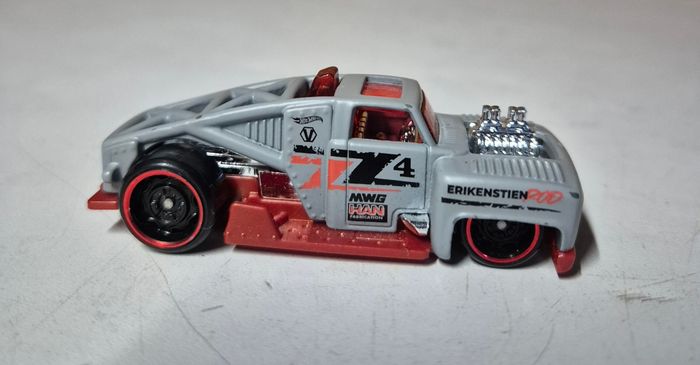 Voiture hot wheels erikenstein rod  modèle réduit custom gris et rouge - photo numéro 1