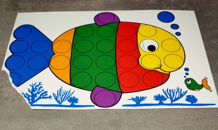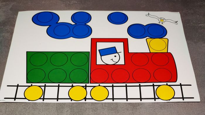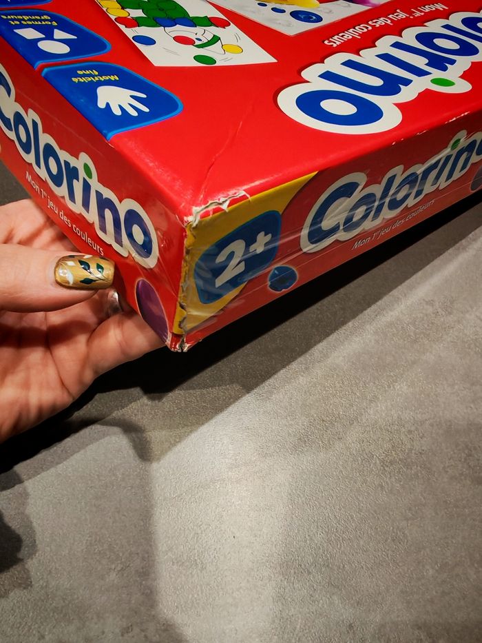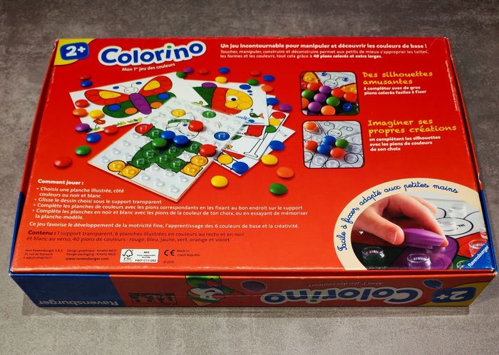 Colorino de chez Ravensburger Joue avec les couleurs Jeu complet, mais 2 planches déchirer et scotcher voir photos, la boîte elle aussi à était scotcher mais le jeu reste en bon etat