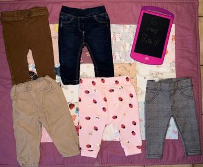 Lot de pantalons, jean et jogging, fille Taille 6 mois Marque diverses, zeeman, tape à l’œil, les petits cailloux, Obaïbi Très bon état #vetements6moisfille #tresbonetat #pantalonsfille #joggingfille #jeanfille #obaibifille #zeeman #tapealoeil #lespetitscailloux