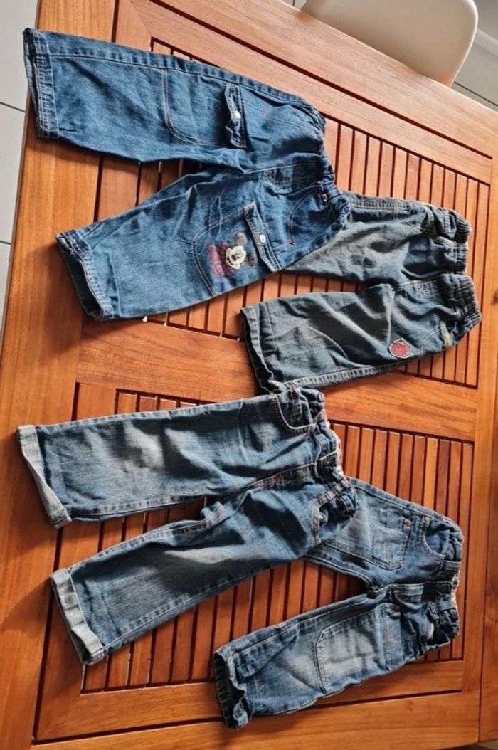 Lot 4 pantalons Jeans et 2 salopettes - 2 pantalons Orchestra - 1 pantalon Disney - 1 pantalon Creeks - 1 salopette Lupilu - 1 salopette Orchestra