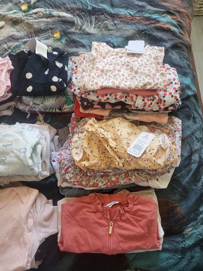 Gros lot de plus de 50 vetement de 1 a 24 mois toute marque ( tres bonne etat , et neuf avec étiquette)