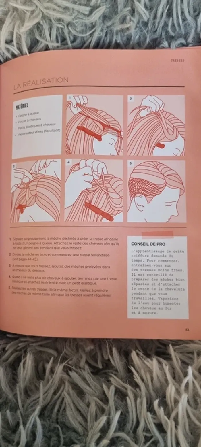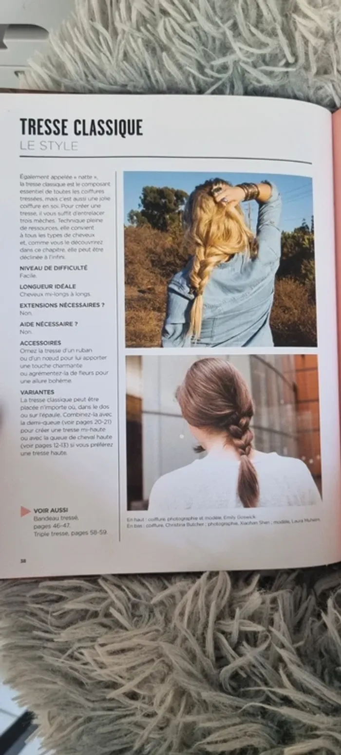 Très bon livre explicatif pour se faire toutes sortes de coiffures. Bien expliqué avec des photos et des dessins. Très bon état.