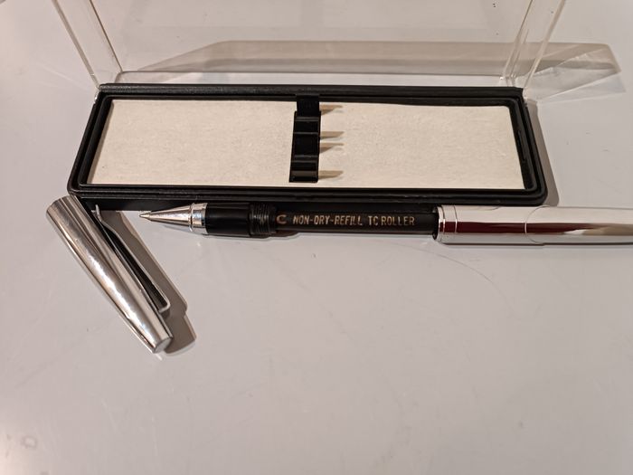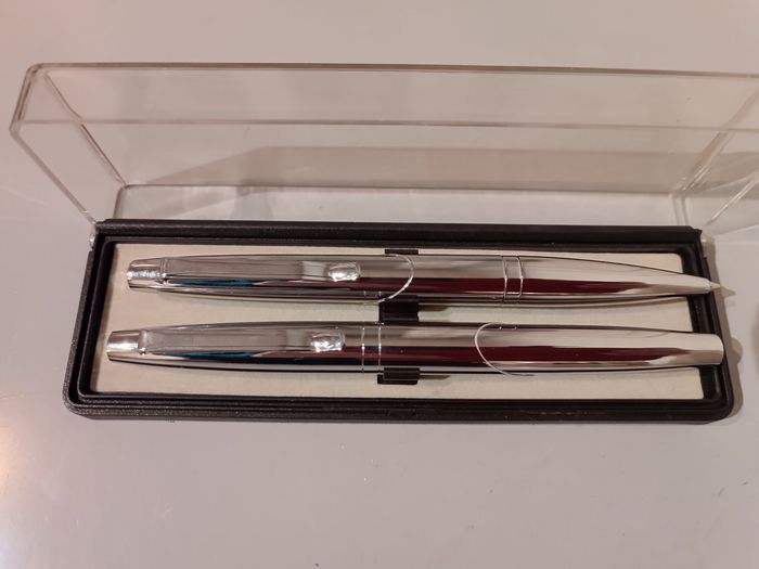 Parure de stylos un bille et un roller bleu en métal chromé très bon état cf photos