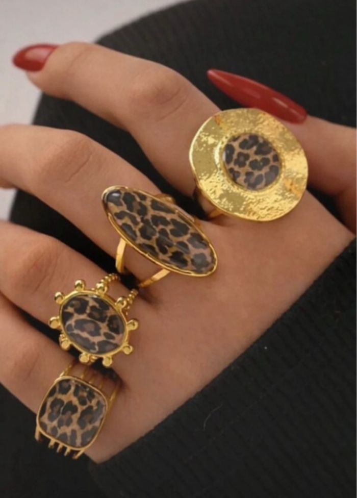 Lot Bagues léopard en acier inoxydable dorée neuf