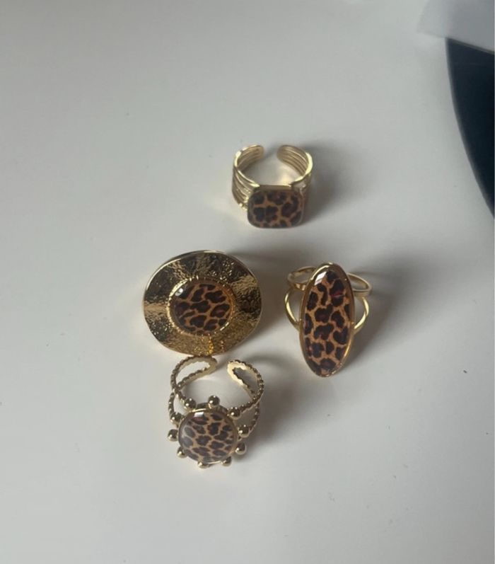 Lot Bagues léopard en acier inoxydable dorée neuf  - photo numéro 3
