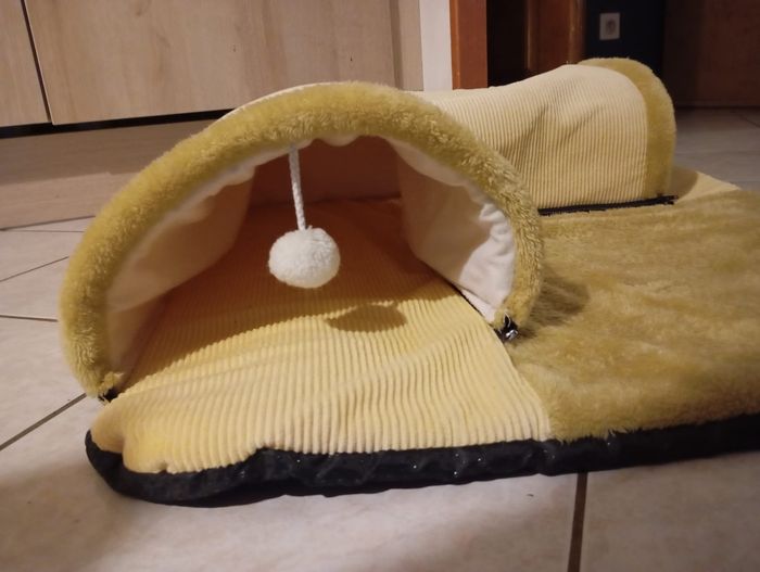 MagiDeal Lit Tunnel créatif pour Chat avec Tapis Amovible 【Jouet interactif】 : ce tunnel pour chat 2 en 1 offre un espace de repos confortable et un jeu tunnel interactif pour votre animal de compagnie. 【Conception antidérapante】 : le fond antidérapant du lit tunnel pour chat permet à votre ami félin de faire des heures d'exercices. 【Matériau durable】 : ce jeu est fabriqué à partir de velours de haute qualité, assurant durabilité, douceur et confort. 【Cadeau parfait】 : chaud, peut être largement utilisé comme lit pour chat ou tunnel de jeu, ce qui en fait un cadeau idéal pour vos amis à 4 pattes. Comme neuf