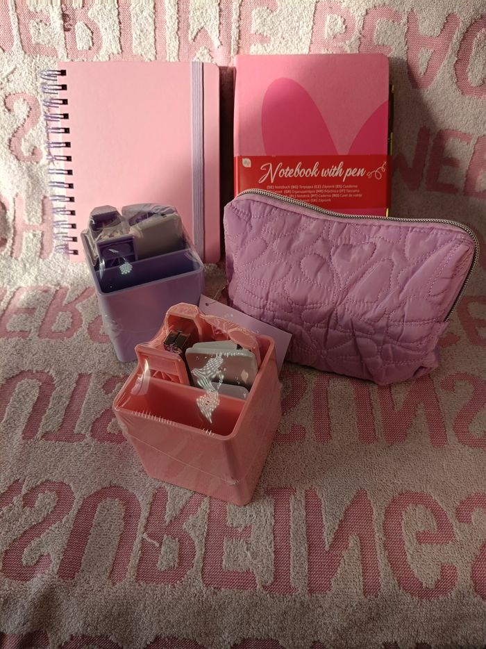 Magnifique lot de 4 articles de papeterie et d’organisation, idéal pour l’école, le bureau ou la maison 💗💜✨ Le lot comprend : • Agenda 2025-2026 rose avec spirale et élastique (neuf) • Carnet rose avec stylo assorti (neuf avec étiquette) • Trousse rose matelassée motif cœurs (neuve avec étiquette) • Organiseurs de bureau avec accessoires (neufs) Parfait pour : – école, primaire, collège ou lycée 📚 – organisation quotidienne – rangement stylos et fournitures – bureau, chambre ou maison 🏡 – idée cadeau enfant, ado ou adulte 🎁 Style girly, pastel, kawaii et tendance. Idéal pour la rentrée scolaire ou organiser son espace avec style. Envoi rapide et soigné 📦 Réduction possible si achat en lot avec mes autres articles 💫