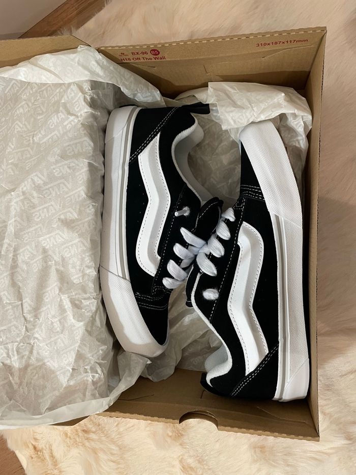 ✨ Vans Knu Skool toutes neuves, jamais portées, avec étiquette ✅ noir et blanches Autre modèles en dressing avec d’autres tailles dispo, jetez un œil je fais des prix sur les lots😉 📏 Taille : 36 🧾 Facture disponible 🤝 Remise en main propre possible autour de Paris / région parisienne ou envoi 📸 Plus de photos dispo en DM !