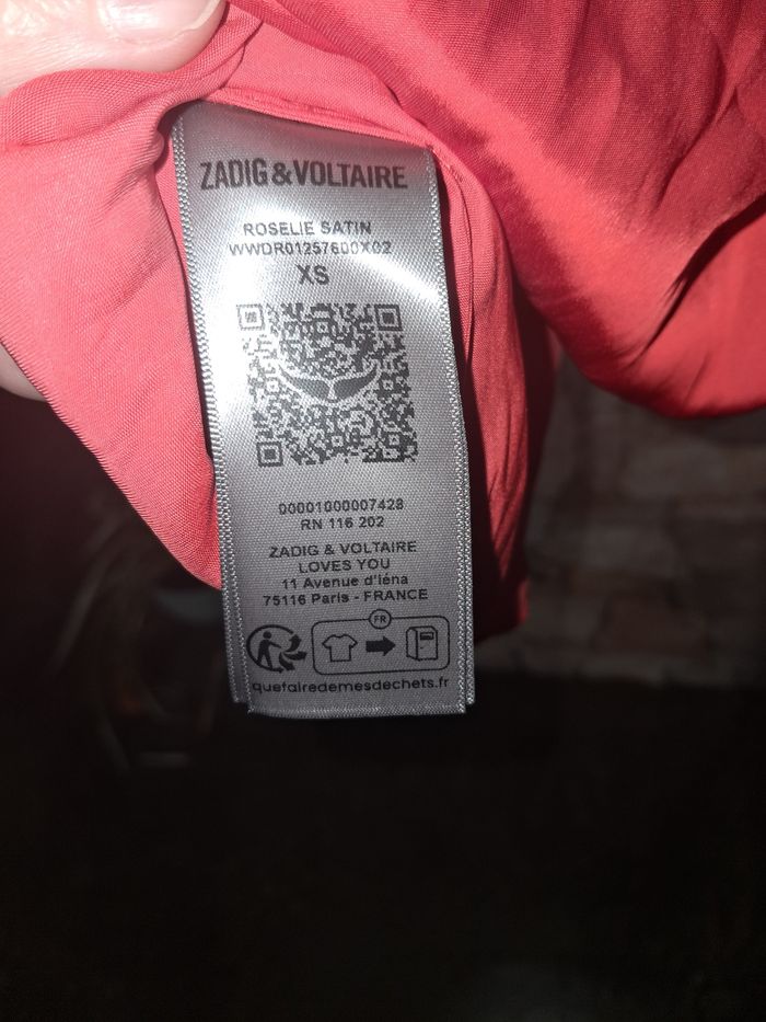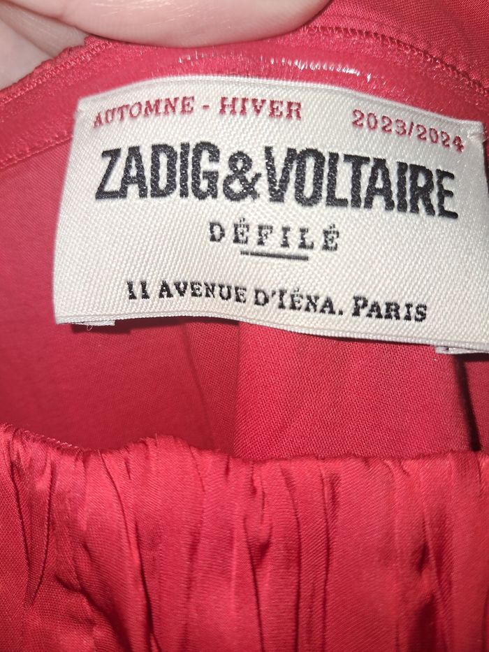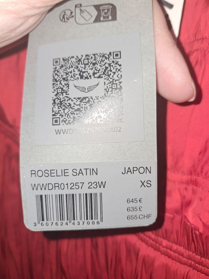 État : Neuf avec étiquette Taille : XS Couleur : Rouge vibrant / Japon Prix boutique : 645 € Description : Je vends cette somptueuse robe de la célèbre maison Zadig & Voltaire, modèle Roselie Satin. Pièce issue de la collection Défilé Automne-Hiver 2023/2024. C’est une pièce d'exception, totalement neuve, jamais portée et avec son étiquette d'origine. Les détails qui font la différence : * Coupe asymétrique : Une bretelle fine d'un côté et une bretelle large travaillée de l'autre pour un look ultra moderne et couture. * Matière noble : Un satin fluide et lumineux (mélange de polyester dont une partie en fibres recyclées) avec une doublure 100% Coton pour un confort absolu. * Design : Taille marquée par des jeux de fronces et de smocks qui subliment la silhouette. * Couleur : Un rouge éclatant nommé "Japon" sur l'étiquette, parfait pour une grande occasion ou une soirée chic. Détails techniques : * Référence modèle : WWDR01257 * Entretien : Lavage délicat à la main ou en machine (max 20°C) recommandé. * Authenticité : Étiquettes intérieures et QR code présents. 📦 Envoi ultra rapide et très soigné. #ZadigEtVoltaire #RobeDeSoiree #Luxe #NeufAvecEtiquette #RedDress #RoselieSatin #Defile #ModeEthique #RecycledFibers