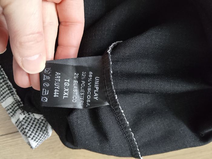 T-shirt noir / blanc / gris manches courtes pour homme, motifs Taille : Étiqueté en XXL mais correspond plus à du XL Marque : Uniplay Mesure dessous de bras à dessous de bras : 50cm Article neuf avec étiquette. Vendu en magasin au prix de 24,99€. Uy444 noir XXL N°1