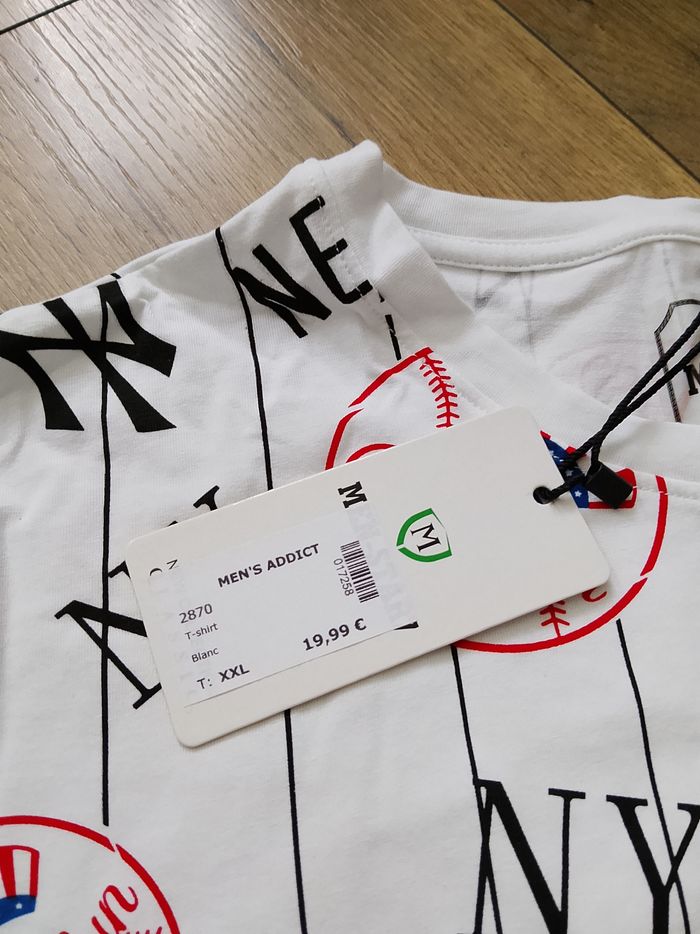 T-shirt blanc manches courtes pour homme. Taille : XXL Marque : NewStar Mesure dessous de bras à dessous de bras : 54cm Article neuf avec étiquette. Vendu en magasin au prix de 19,99€. 2870 blanc XXL N°1