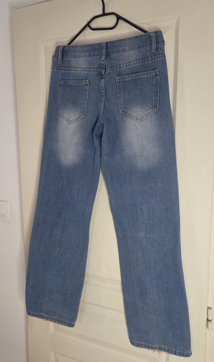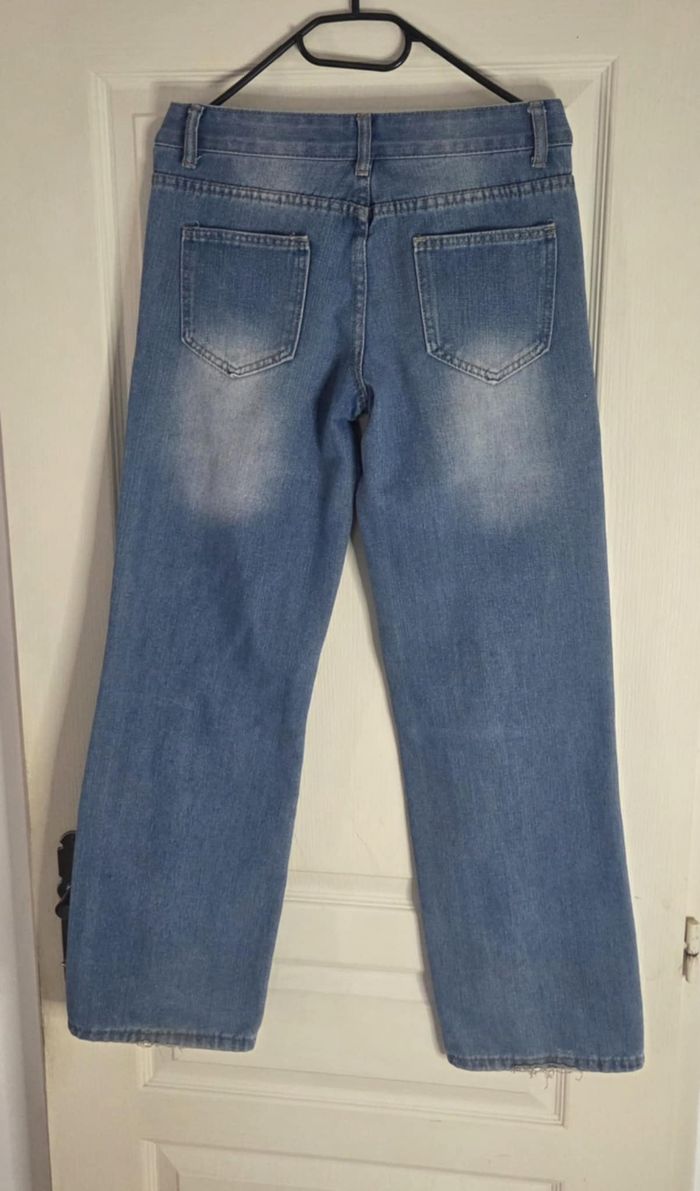 Jean S femme denim clair imprimé cœur – Coupe droite tendance – Excellent état - photo numéro 3