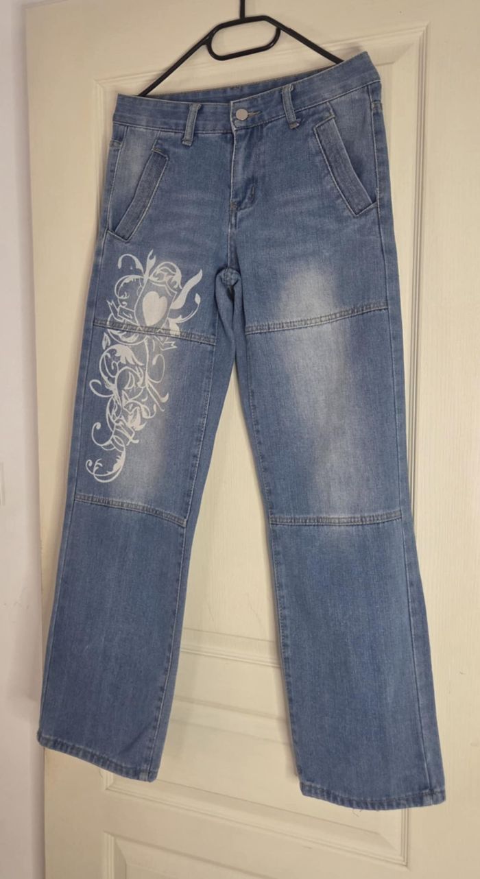 Jean S femme denim clair imprimé cœur – Coupe droite tendance – Excellent état - photo numéro 1