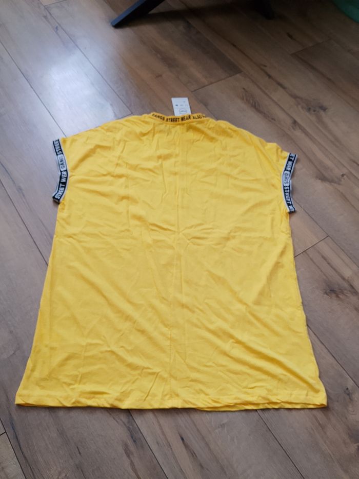 T-shirt jaune manches courtes pour homme, uni, motifs sur les manches. Taille : XXL Marque : Gangs Mesure dessous de bras à dessous de bras : 60cm Article neuf avec étiquette. Vendu en magasin au prix de 22,99€. G21087 jaune XXL N°1