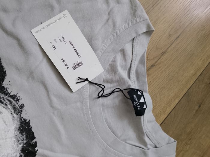 T-shirt gris manches courtes pour homme. Flocage sur le devant, uni sur l'arrière. Taille : XXL Marque : Renever Mesure dessous de bras à dessous de bras : 52cm Article neuf avec étiquette. Vendu en magasin au prix de 19,99€. Zt5103 gris XXL N°1