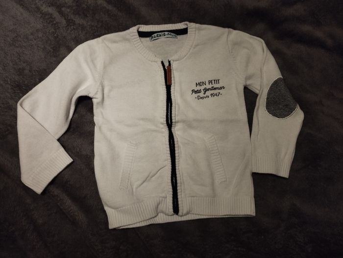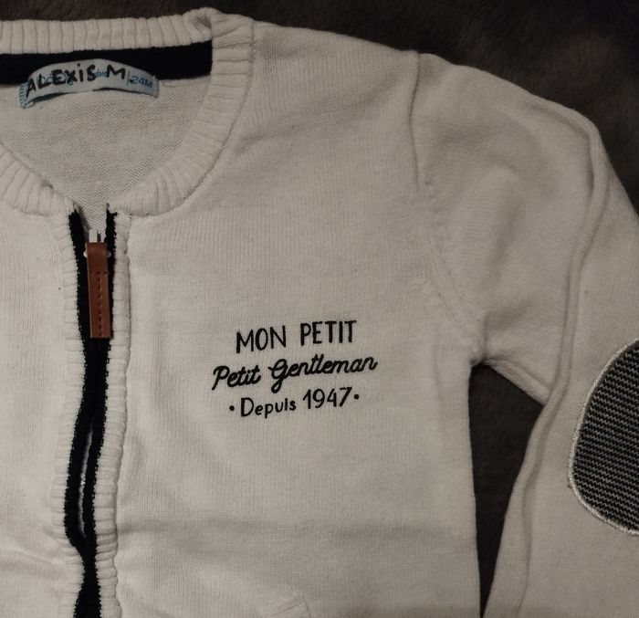 Veste blanche zippée "Mon petit gentleman" de marque Gémo baby, pour bébé garçon 📏 24 mois 📍En excellent état, portée 1 ou 2 fois seulement, mais prénom de mon fils écrit sur l'étiquette #MissSandrine24mois