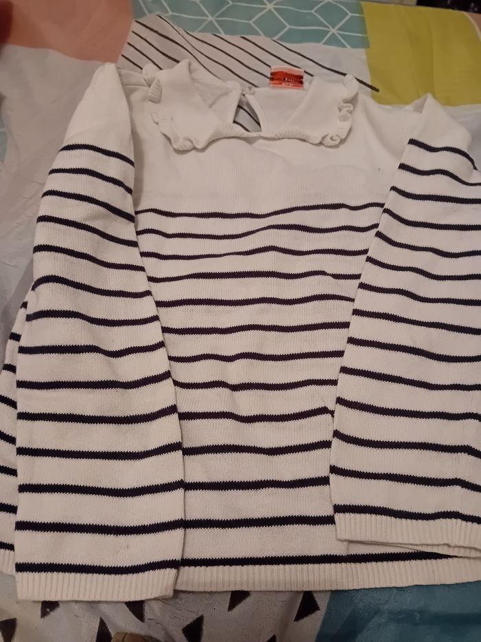 Lot de 4 vêtements fille tape à l'œil un pantalon large 4 ans, une veste noire 5 ans,  une jupe jeans 6 ans et un pull blanc rayures noires 4ans. - photo numéro 10