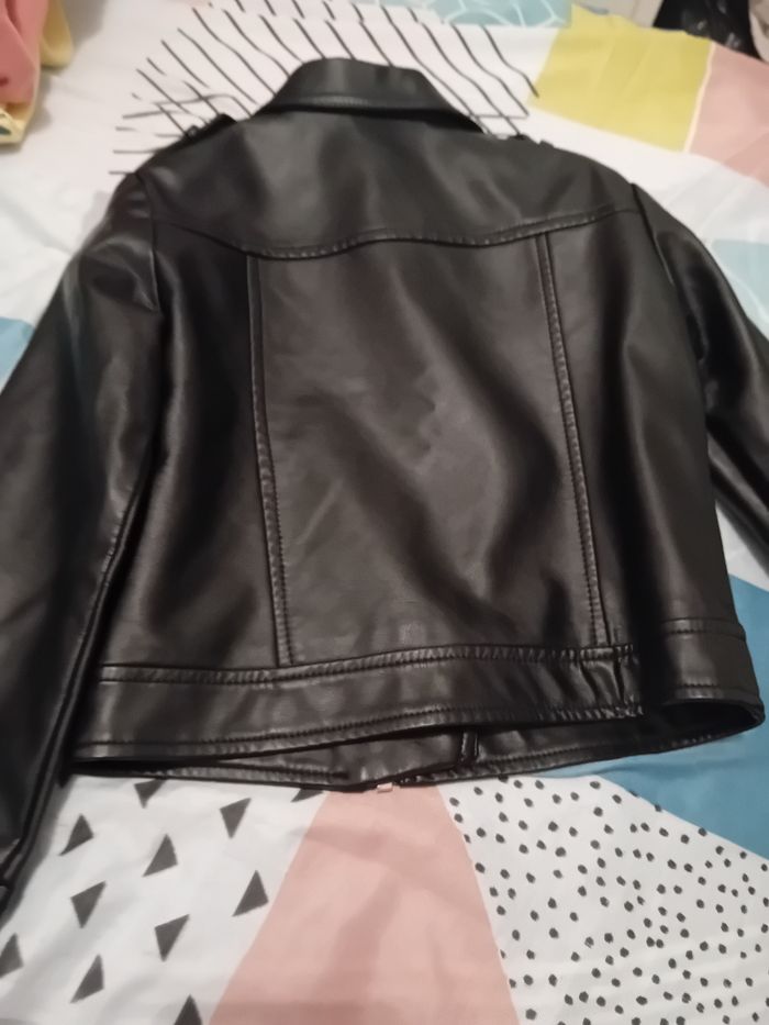 Lot de 4 vêtements fille tape à l'œil un pantalon large 4 ans, une veste noire 5 ans,  une jupe jeans 6 ans et un pull blanc rayures noires 4ans. - photo numéro 5