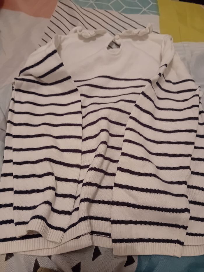 Lot de 4 vêtements fille tape à l'œil un pantalon large 4 ans, une veste noire 5 ans,  une jupe jeans 6 ans et un pull blanc rayures noires 4ans. - photo numéro 7