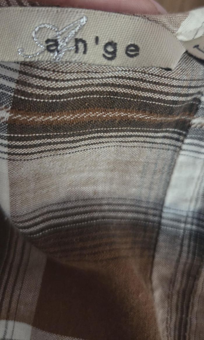 ✨ Description Très jolie robe Ange à carreaux marron, beige et blanc, avec finitions en dentelle et broderies florales délicates en bas de robe. Style bohème / romantique, parfaite pour la mi-saison ou l’été. 🔎 Informations essentielles Marque : Ange Taille : T2 (correspond environ à un 38/40 – voir mesures) Longueur : 92/93 cm Largeur sous bras : 42 à 47 cm (extensible) Coupe : fluide, légèrement évasée Détails : col en V avec dentelle, petits volants aux épaules, broderies bas de robe État : Peu portée, excellent état Envoi : rapide et soigné La couleur du vêtement peut légèrement varier en raison des conditions d’éclairage. Veuillez examiner attentivement les photos, les détails et les mesures fournies. Pour toute information complémentaire, n’hésitez pas à me contacter.