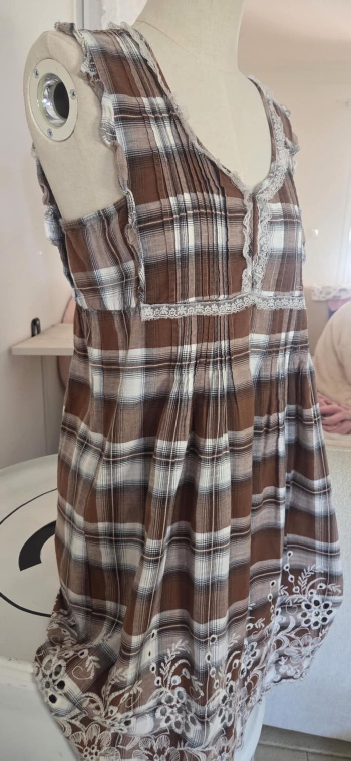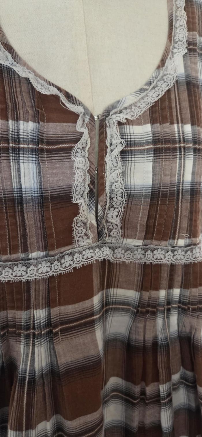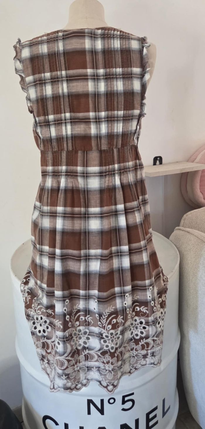 Robe Ange T2 Carreaux Marron & Dentelle – Esprit Bohème Chic - photo numéro 1