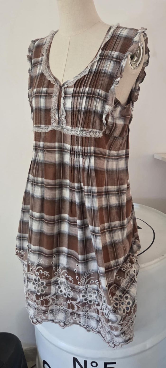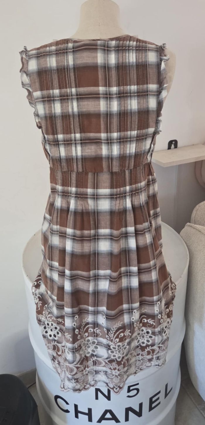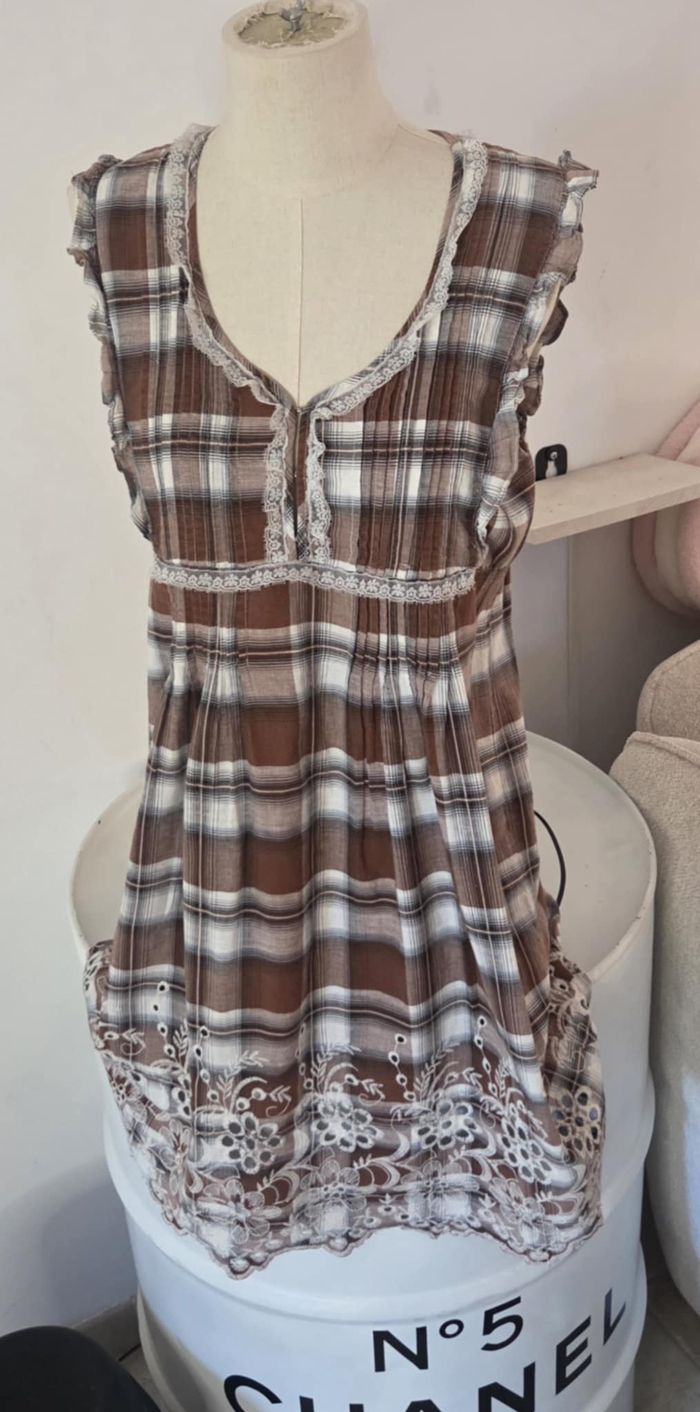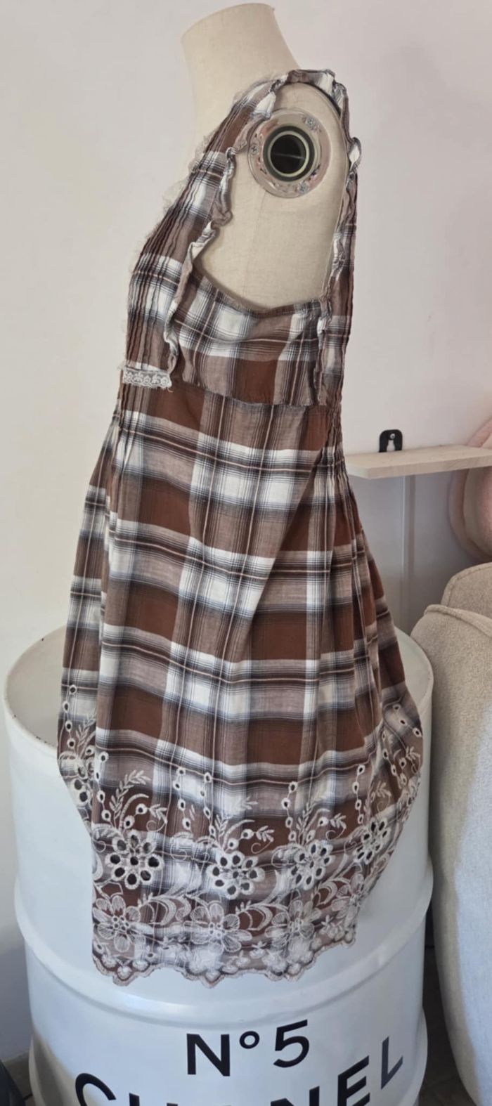 Robe Ange T2 Carreaux Marron & Dentelle – Esprit Bohème Chic - photo numéro 1